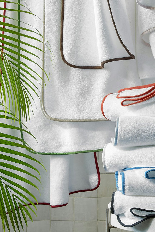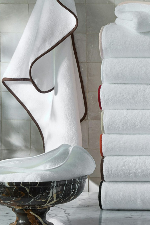 This most luxurious towel features extraordinary, high-quality Egyptian cotton from the Nile River Valley. With a cozy weighted feel and unparalleled softness, it offers an exceptionally unique blind stitch piping, making for a flawless look and feel.