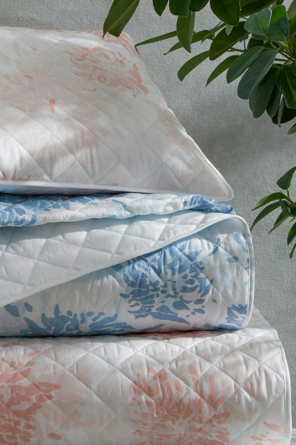 Chrysanthemum is a Matouk Tillett style inspired by one of Tillett Textiles's most iconic prints. Originally designed by DD Tillett and famously featured in Jacqueline Kennedy Onassis’s Hyannis Port home, this beautiful pattern on crisp Luca percale features a flowing floral motif and soft, painterly lines. It lends a graceful, romantic sensibility to the bed.