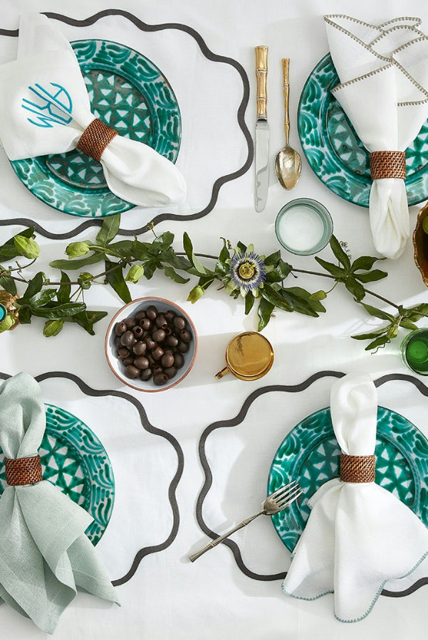 Set a charming and chic table with these Scallop Edge Placemats. Crafted from 100% linen and featuring Matouk's signature taped border detail. Available in 13 dynamic colors, Scallop Edge is designed for mixing and matching with different hues and styles to create a unique tablescape of your own. Great for everyday use.
